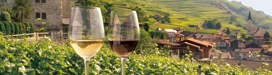 マッターホルンなどの名峰を有する南西部の州で気候も土壌もワイン造りに適し、ワイン生産量はスイスで第1位。